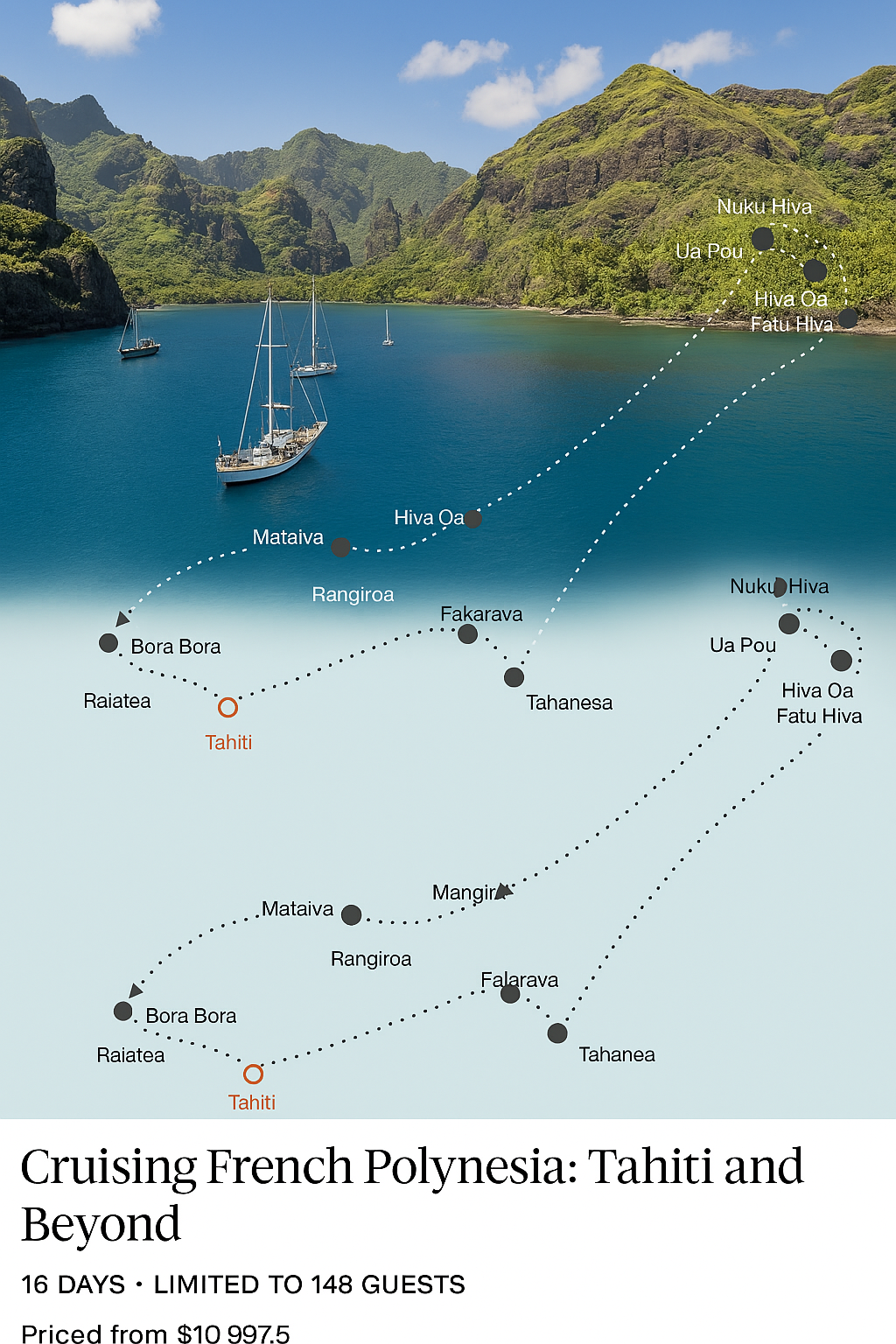 - French Polynesia (Sept 18–Oct 4, 2026): From $10,997 per person