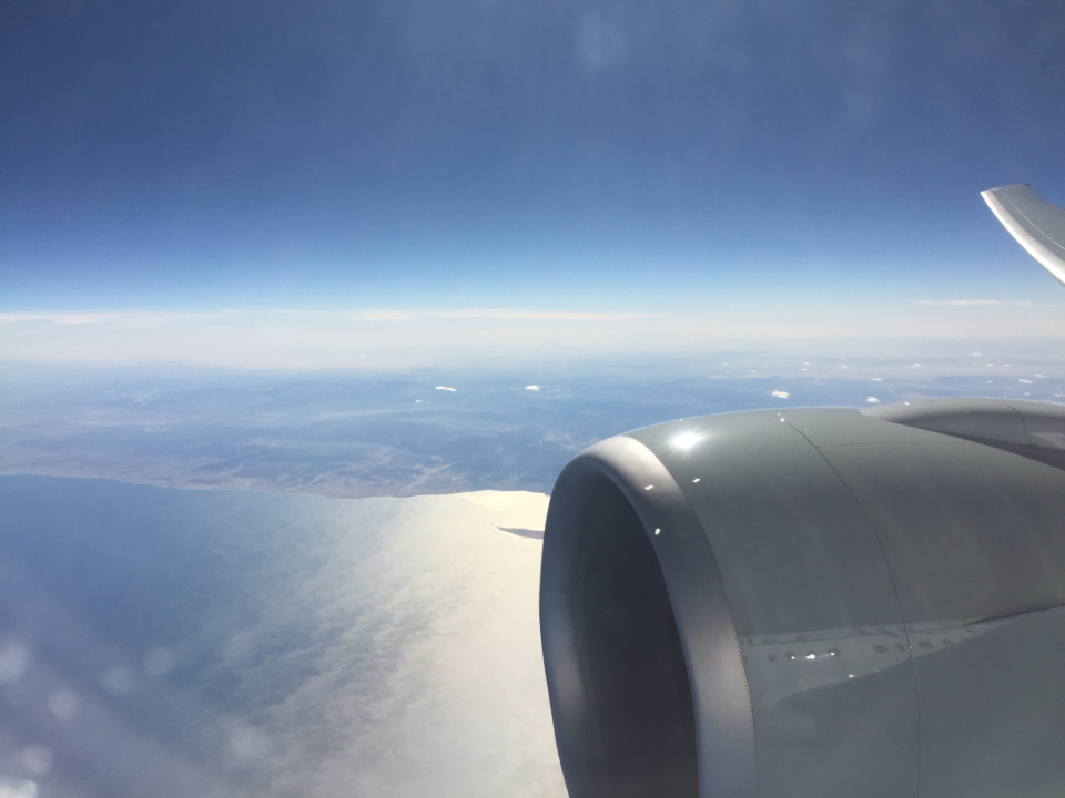 Our routing took us directly eastward over downtown Chicago and Lake Michigan as we glided towards the Middle East. I could see the beautiful, big GE90-115B engines just outside my window and had a clear view of the City of Big Shoulders.