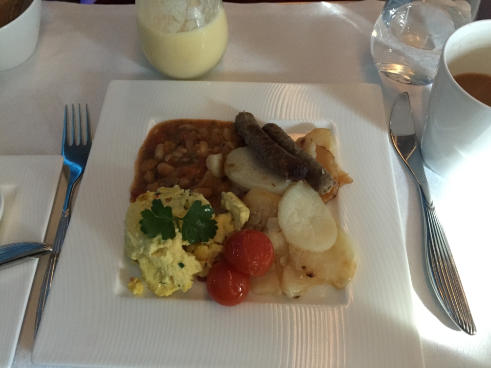 For the main course, I had the English breakfast, which came with scrambled eggs, chicken sausage, scalloped potatoes, baked beans and roasted tomatoes. At this point, we were crossing the Red Sea.