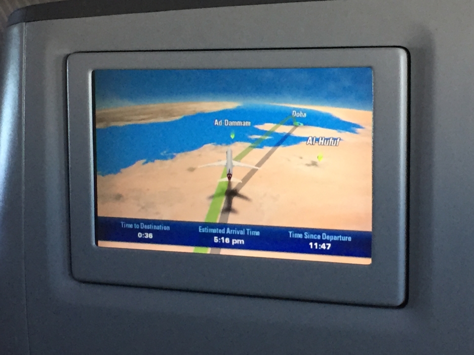 Qatar’s In-Flight Entertainment System, Oryx, is phenomenal. It is up there with Singapore Airlines and Emirates in terms of content, quality, comprehensiveness, and depth. As I’ve stated before, I am not much of a television and film person, as I care way more about enjoying the food, service and hard products of a flight above the in-flight entertainment, but I was very satisfied with what was offered. More than anything, I adored the moving map features. The routing we had today would take us over Detroit, Toronto, Montreal, over the Gulf of St. Lawrence, across the North Atlantic then veer south of Spain, over the Mediterranean and then into Northeastern Africa, then into the Saudi Peninsulas before making our way due north into Doha.