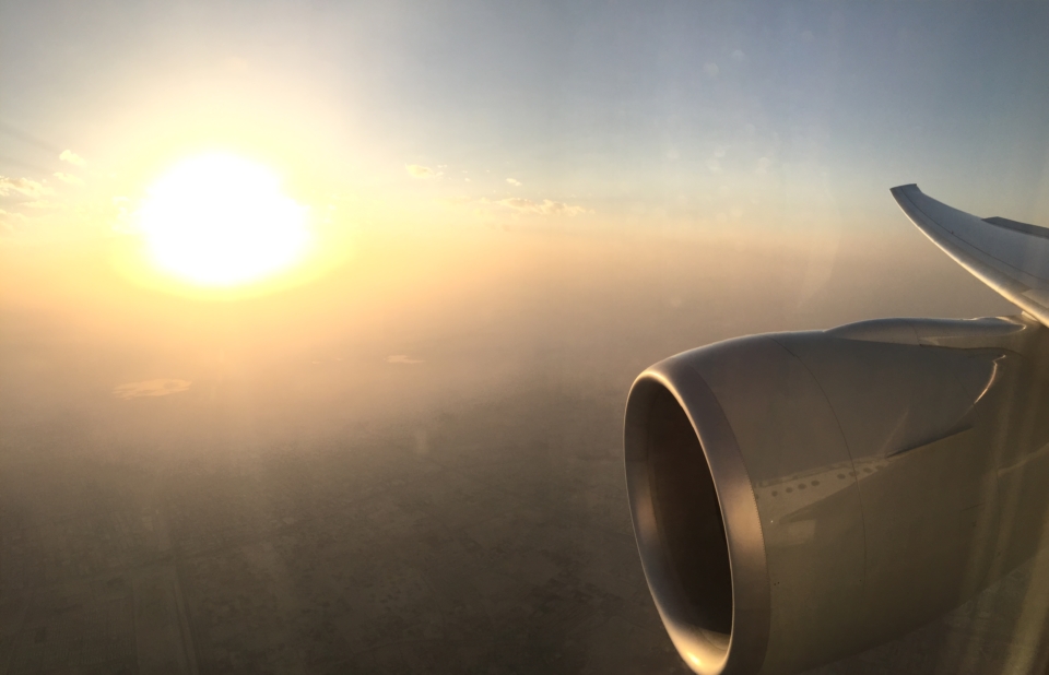 The rest of the flight proceeded uneventfully, but soon we were beginning our descent into Doha. We had gorgeous views of the sunset over Hamad International airport before making our touchdown into DOH. The approach reminded me a lot of my flight to Seoul on Asiana.