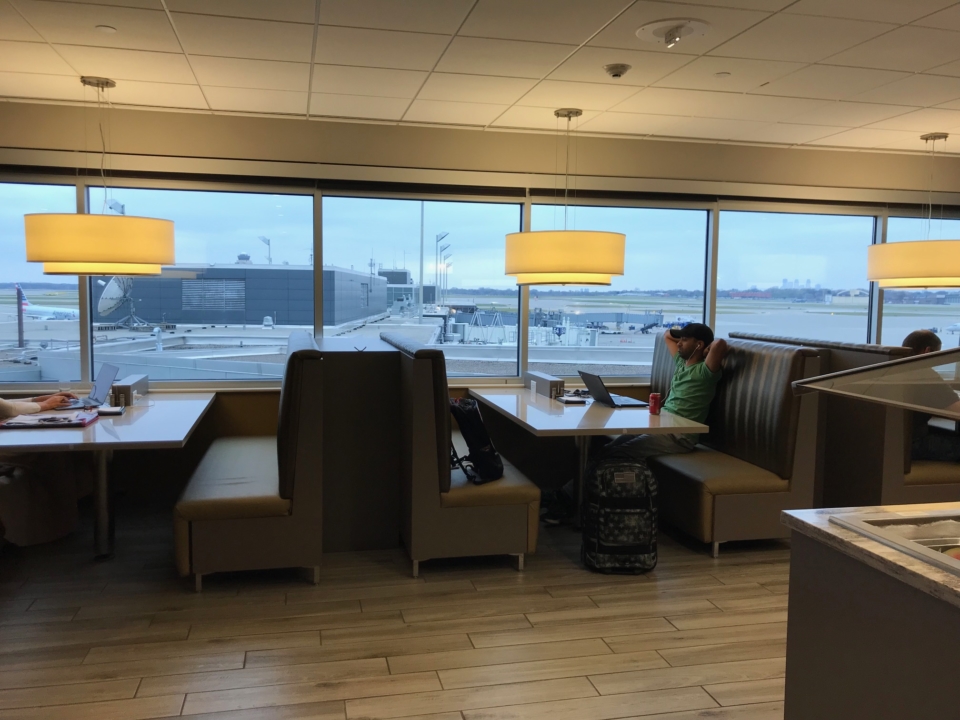 The one downside is that there is somewhat of an unusual bathrooms situation – you have to actually exit the lounge in order to use the restrooms here. But, all you have to do is walk around and come back in through the front.