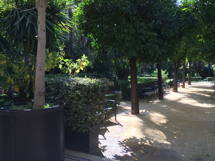 A pianist plays until about 9:30 or 10 at night, right next to the Bar Americano. It has even more bling than our bathroom, and good drinks to match. Although mostly empty during our stay, we ran into a tour group that was following the same route through Spain as we were (even all the same hotels) and chatted about the pictures of old Hollywood stars who had filmed movies in Seville. You might recognize the Alcazar from more recent hits like Game of Thrones.