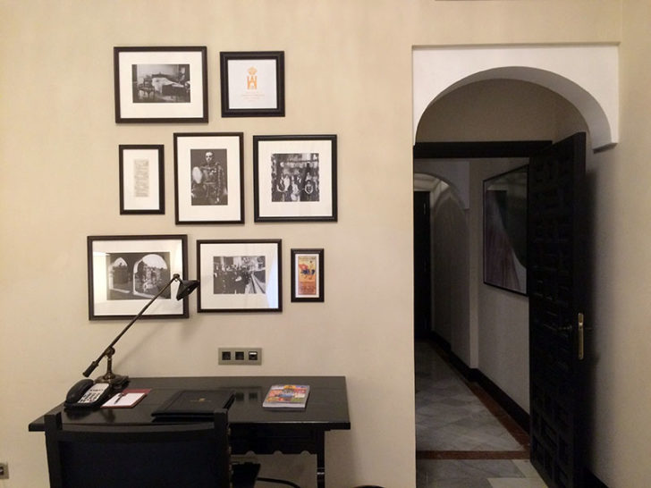 Near the hallway was a generous desk with several old photographs reflecting the era of the hotel’s construction, and a chair in the corner offered space to read. However, the hotel has lots of open areas on each floor, in the hallways, and in the gardens around the hotel if you want a quiet spot to relax.