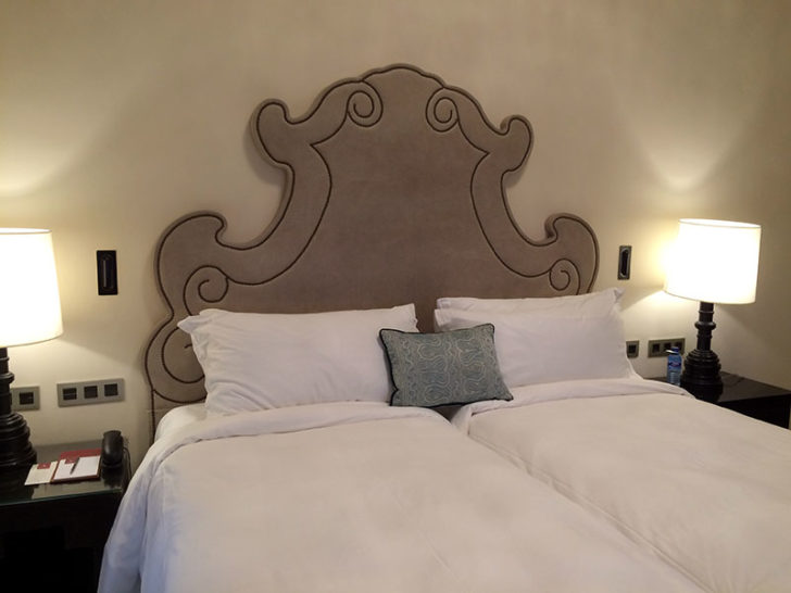 Although the bed was set up as two twins, we decided to keep things that way and enjoy the quirky European style. The big padded headboard was flanked by lamps, reading lights, and additional switches and outlets on either side so we didn’t have to hunt for anything.