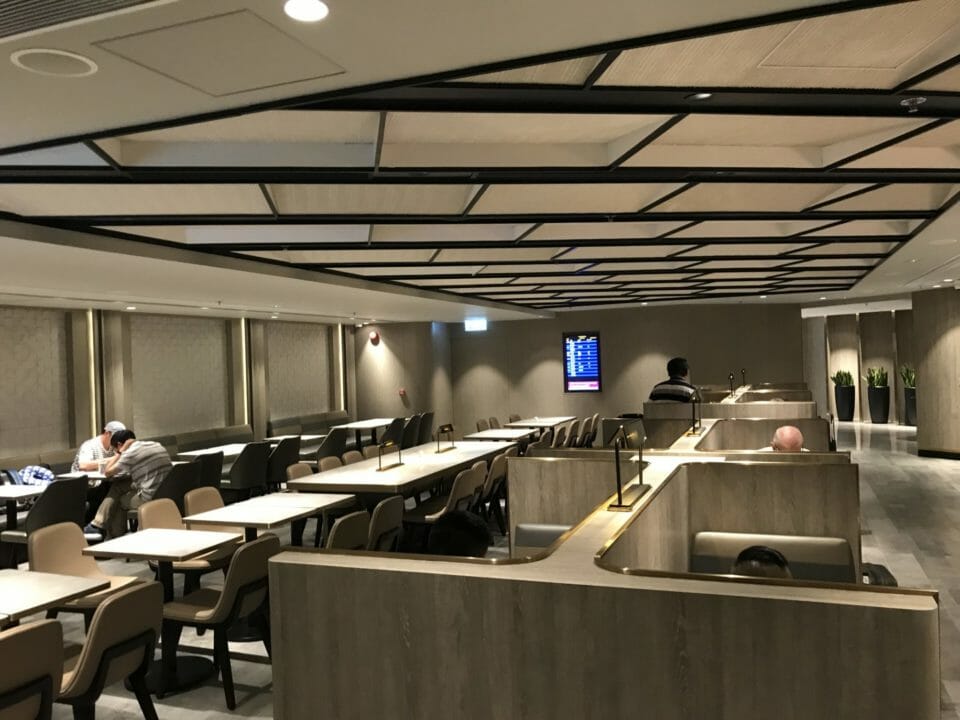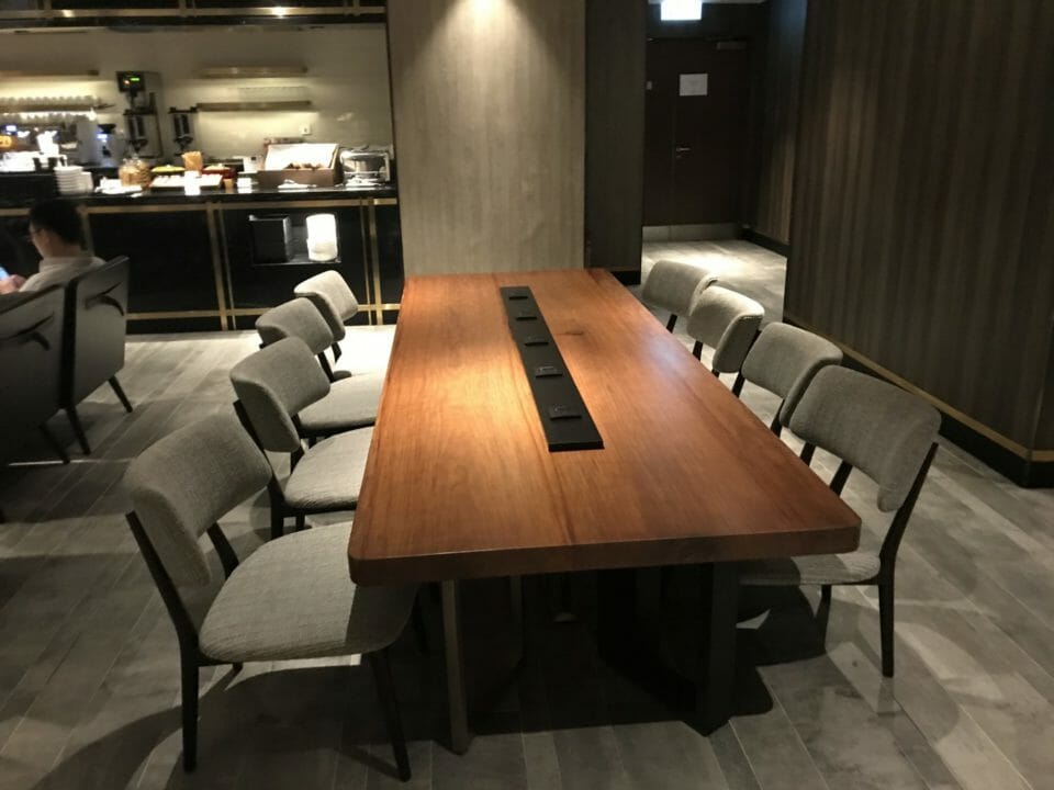The interior of the lounge is a bit “dark” in the sense that there are no windows or views of the tarmac, but the interior is gorgeous. It has a lot of space to roam, work and play, although it is entirely business-centric. This is definitely a transfer lounge where you are meant to come, grab a rest and optimize your dining/working/refreshing experience.