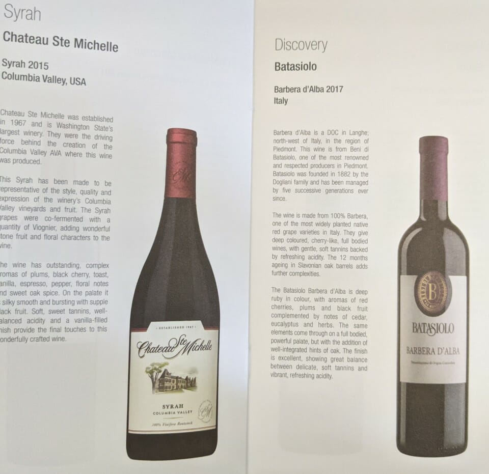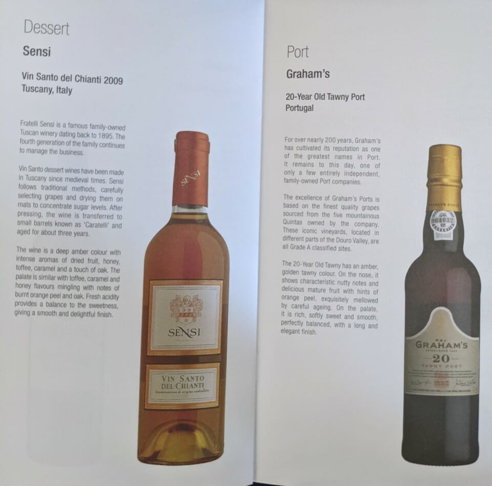 The wine list to and from South Africa are not completely the same as those to North America. Despite being a 10+ hour flight, the more premium wines are saved for other destinations. Many of the wines on this flight retailed for around $14 with a few closer to $30.