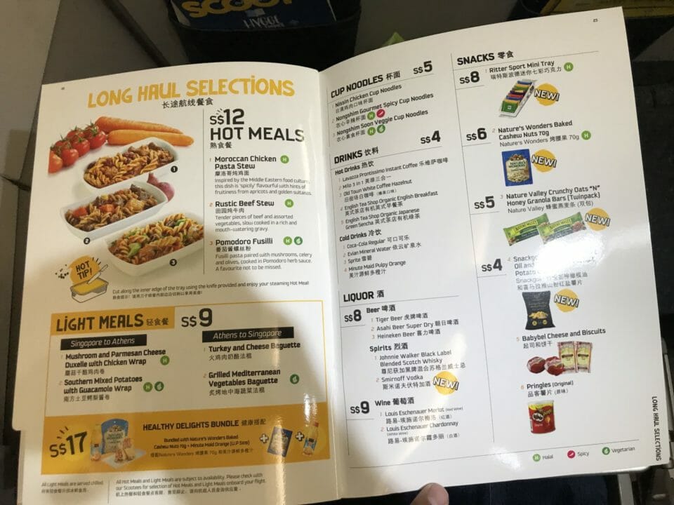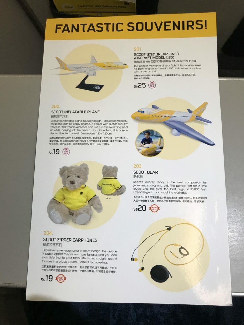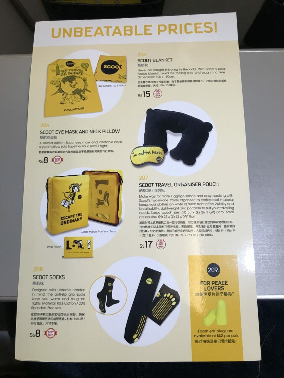 It is pretty incredible how many things one can purchase on a Tigerair (I guess I should start saying Scoot) flight. For instance, they have the pillow, blankets and socks packages, toys and collectibles, and let’s not forget all of the food! I liked how the font on the food menu appeared like the same kind used on Spirit Airlines. I was looking for the, “Grab Some Liquid Fun” prompt somewhere.